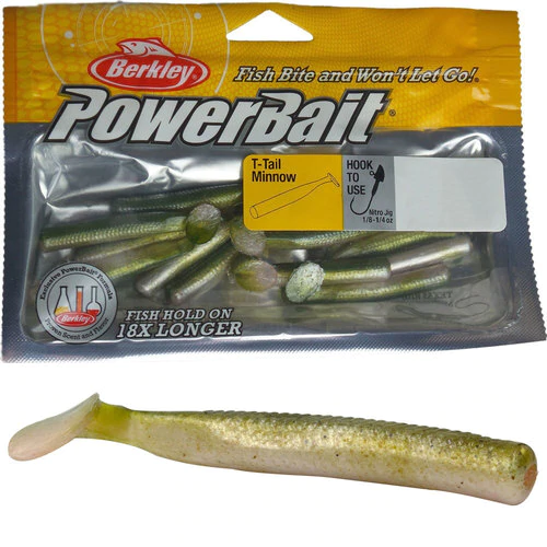 Match the hatch with feeders with a wide range of colours in Berkley Powerbait T Tail Minnow shape. Proven fish takers, the T Tail Minnow’s T shaped rear end has a tight vibrating action at the slowest of retrieves and comes with the Berkley powerbait advantage, fish hold on 18X longer! Designed in Australia to suit Nitro jig heads, fish Berkley Powerbait T Tail Minnows for trophy trout and mega bass with confidence.