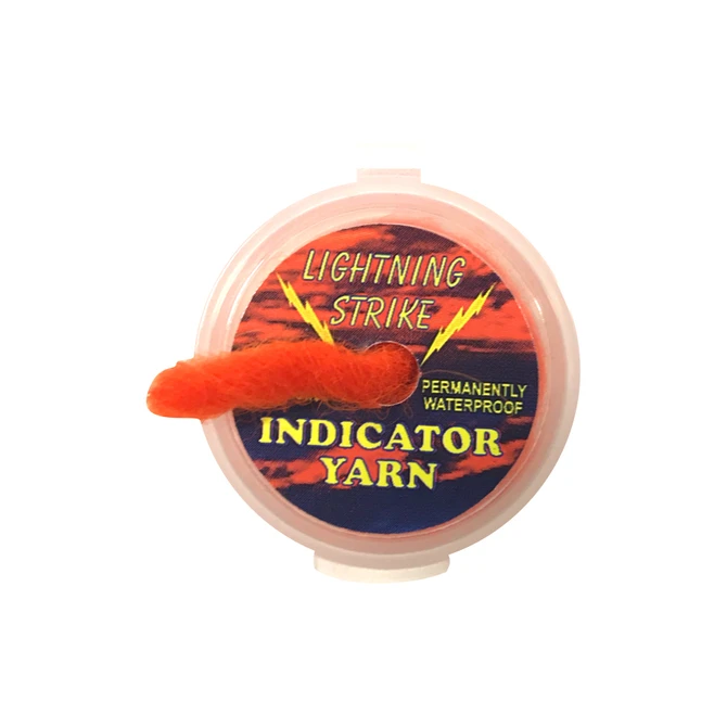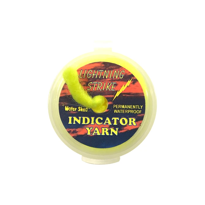 Lightening Strike Indicator Yarn. Pre-treated with Watershedâ„¢ for the ultimate in floatation and visibility, the dispenser contains 3 feet per package.