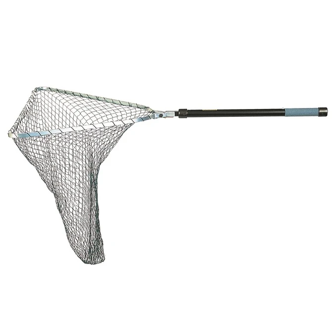 Collapsible triangle weigh net with telescopic handle. Knotless bag.